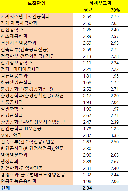 학생부 등급 단순 평균값을 사용했으며, 최종등록자 100% 기준 입니다.