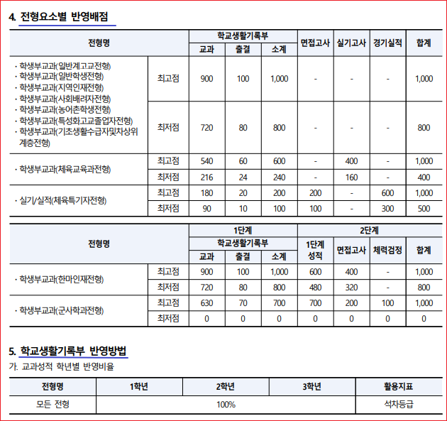 학생부교과성적 90% + 출결 10% 입니다. 거의 교과성적으로만 선발합니다.