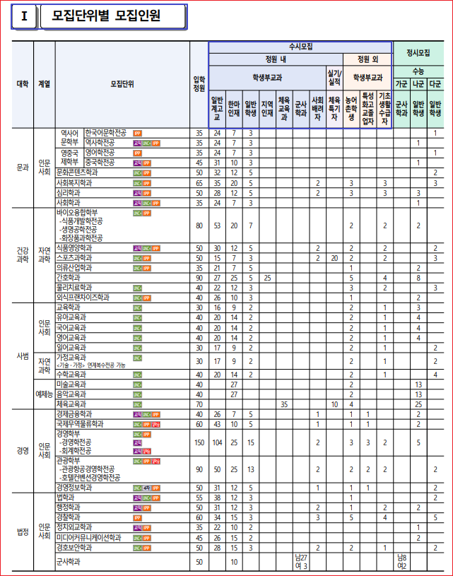 2022 학년도 경남대학교 ( 경남대 ) 모집단위별, 전형별 모집인원 입니다.